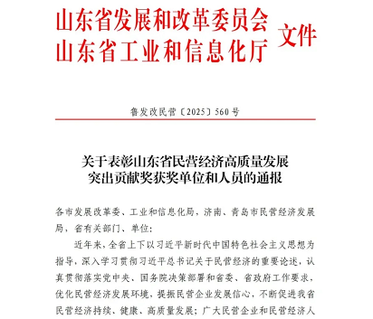 魏建國董事長榮獲“山東省民營經濟高質量發展突出貢獻個人”榮譽稱號